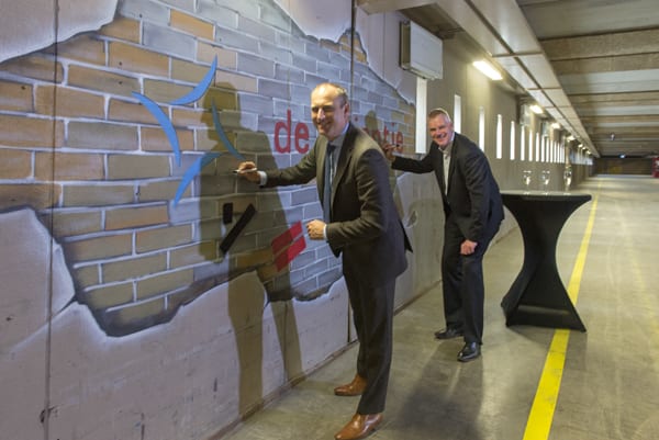 Ondertekening overeenkomst m.b.t. 275 studentenwoningen en 250 reguliere sociale woningen in Bajes Kwartier in Amsterdam. V.l.n.r. Peter Heuvelink, directeur AM Noordwest en Jan van Barneveld, directeur de Alliantie Ontwikkeling B.V.