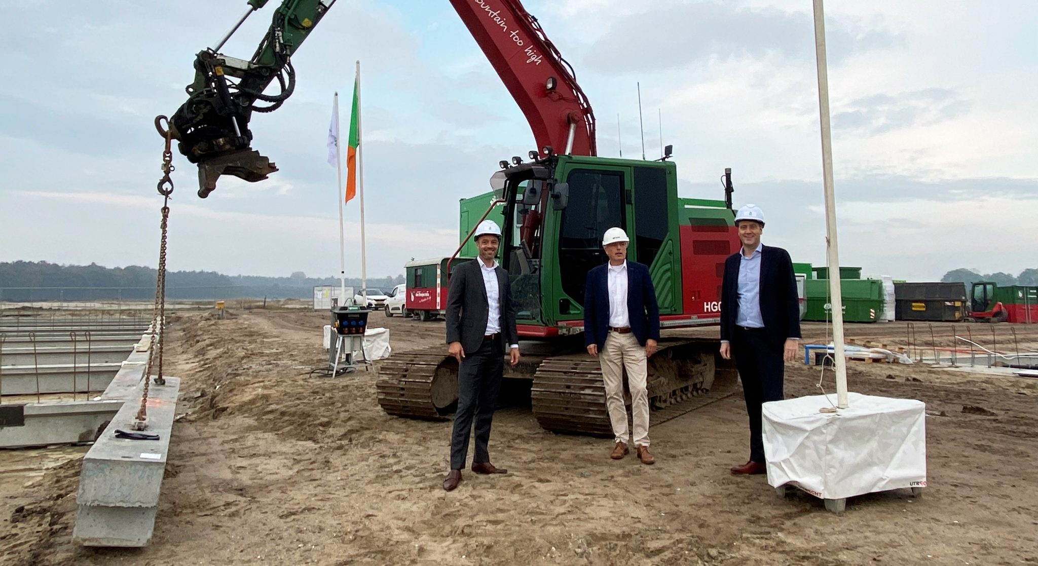 Hoef en Haag, 4 november 2021 – Na een succesvolle verkoop is de bouw van de vierde fase van Het Dorpshart, deelgebied van het nieuwe dorp Hoef en Haag, officieel gestart. In opdracht van Hoef en Haag CV (gebiedsontwikkelaars AM en BPD) worden 91 koopwoningen gerealiseerd. Gelijktijdig worden in deze fase 39 sociale huurwoningen in opdracht van LEKSTEDEwonen gerealiseerd. Wethouder Huib Zevenhuizen (Ruimtelijke Ontwikkeling) van de gemeente Vijfheerenlanden legde in het bijzijn van toekomstige bewoners de eerste funderingsbalk.