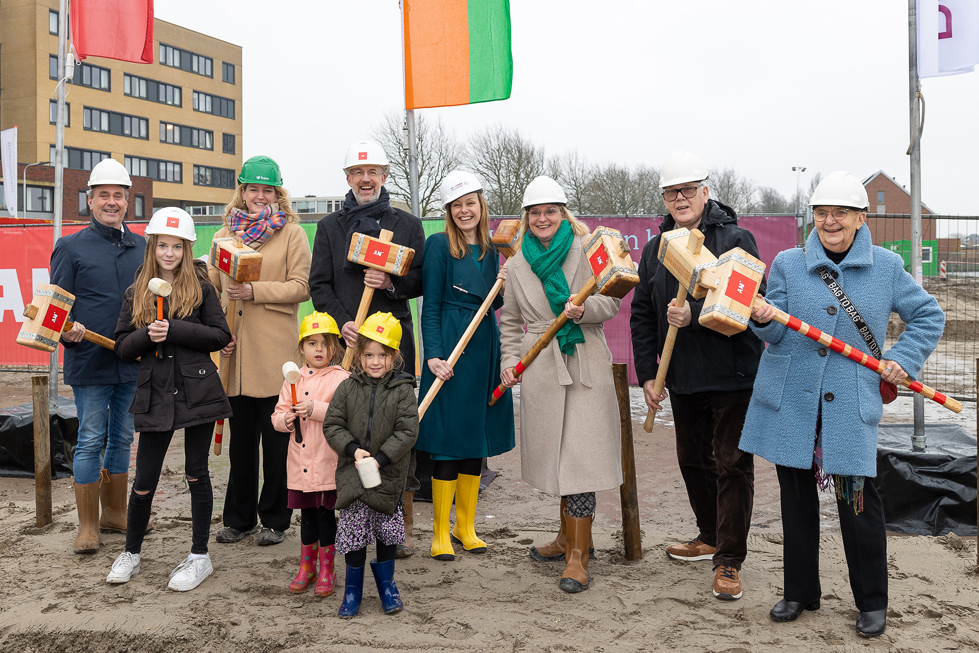 Donderdag 29 februari zijn in het bijzijn van de betrokken partijen, bewoners en kinderen uit de buurt de eerste palen geslagen. Een symbolische handeling die de betrokkenheid van de hele gemeenschap benadrukt bij het tot stand brengen van deze zorgzame buurt.