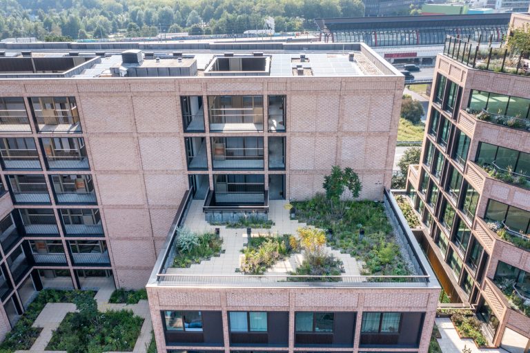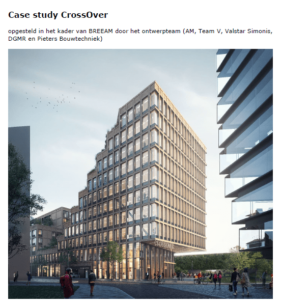 AM geeft met Crossover invulling aan haar maatschappelijke thema’s Gedurfde duurzaamheid, Healthy urban living & working en de Inclusieve stad. Crossover heeft bij oplevering een BREEAM-NL Outstanding label, het hoogste BREEAM NL duurzaamheidslabel dat uniek is voor mixed use gebouwen in Nederland. Daarnaast beschikt het gebouw bij oplevering ook over het WELL Core V2 Certificaat van het International Well Building Institute. Deze certificeringsnorm richt zich specifiek op gezondheid en welzijn van de gebruikers van het gebouw.