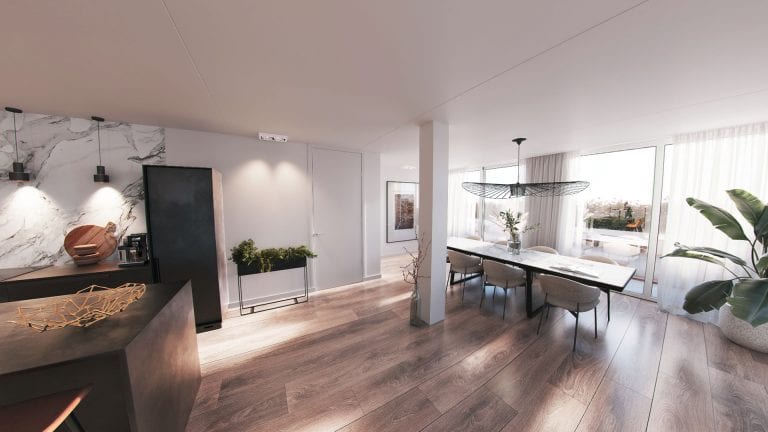Het woonprogramma kreeg een zeer diverse invulling met appartementen in verschillende groottes en typologieën. De buitenruimtes bestaan uit royale balkons en dakterrassen en een gezamenlijke binnentuin. Deze dragen met een groene invulling bij aan de duurzaamheid en biodiversiteit. Tevens draagt het complex bij aan het terugdringen van hittestress en ook is het rain proof: het vermindert de overlast van piekbuien.
