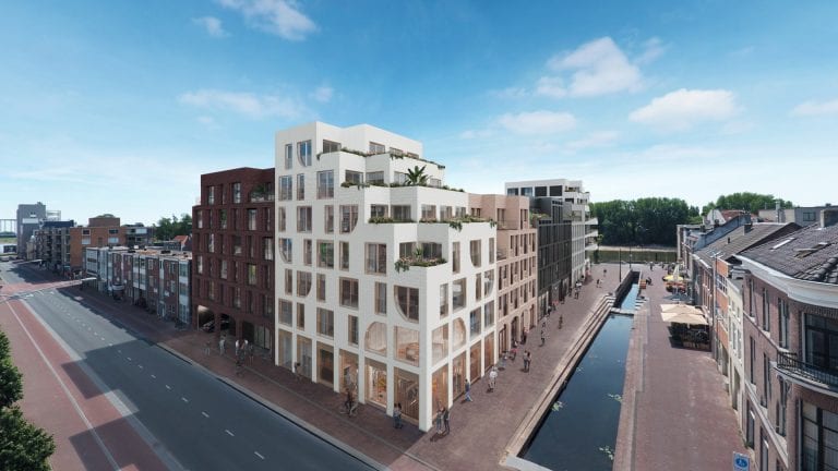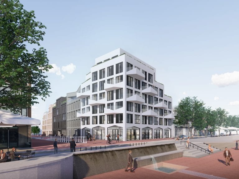 Vanuit het centrum van de stad wil de gemeente een rode loper uitleggen naar de Rijnoever. Daartoe is in de afgelopen jaren onder meer de Jansbeek weer zichtbaar gemaakt. Pal naast de plek waar de beek de rivier in stroomt, zette de gemeente in 2018 een nieuwe locatie in de markt. Zij had de bestaande opstallen verworven en nodigde marktpartijen in competitieverband uit om een plan in te dienen. AM zag vanuit haar kernthema ‘Stad- en gebiedmaker’ kansen om hier een gevarieerd woningbouwprogramma te realiseren, in combinatie met een aansprekend programma voor de plint. Dit zou een verdere impuls voor de omgeving kunnen betekenen. Met architectenbureau Barcode werd een plan voor 57 appartementen ontwikkeld, die gelegen zijn boven een publieke plint. Aan de basis van dit concept lag het DNA-boekje dat AM bij dit soort gebiedsontwikkelingen samenstelt en waarin de essentiële waarden van het project worden benoemd.