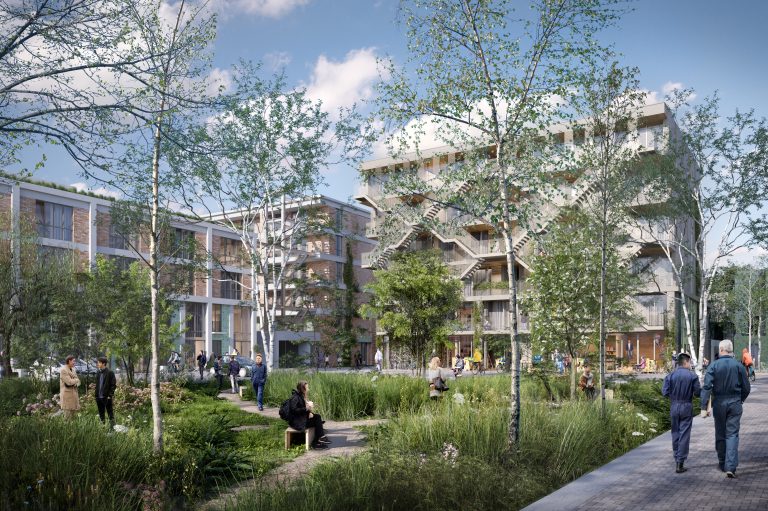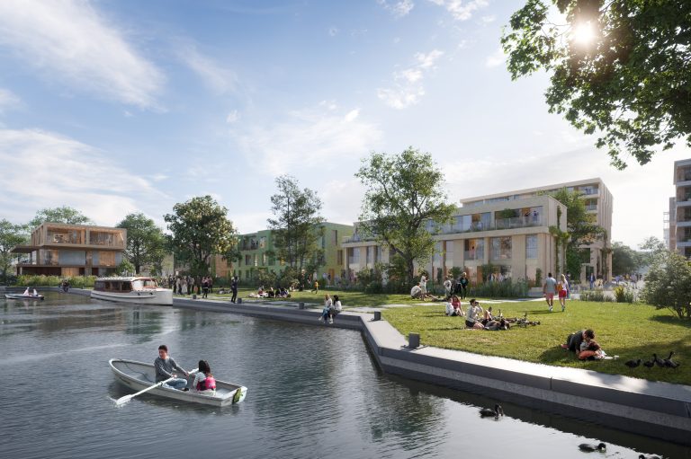 Het stedenbouwkundig plan kenmerkt zich door een natuurinclusieve inrichting. Het parkeren wordt zoveel mogelijk van straat gehaald, groen krijgt royaal de ruimte – op en rondom de gebouwen, tot en met een pocketpark aan het water aan toe. Regenwater wordt opgevangen en naar waterbergingen geleid in de vorm van wadi’s en vijvers.