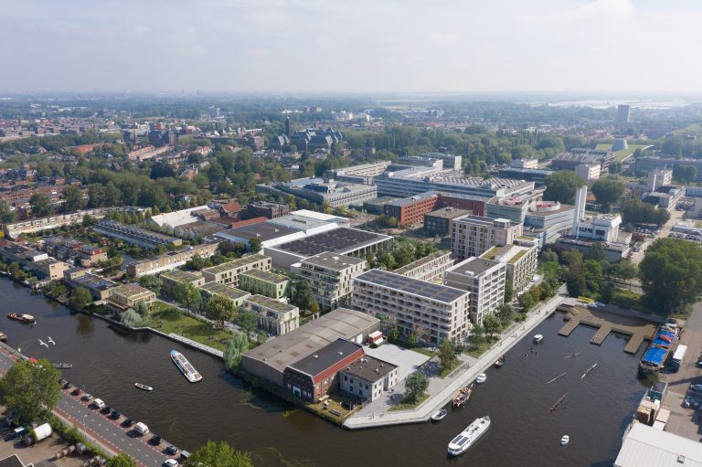 Het is een dynamische plek, ingeklemd tussen bedrijvigheid en de onderwijsgebouwen van InHolland en de TU Delft. AM herontwikkelt een braakliggend terrein aan de Delftse Schie tot een aantrekkelijk woon- en werkmilieu. Inclusiviteit staat voorop: het programma bedient uiteenlopende doelgroepen en de omliggende bedrijven worden nauw bij de planontwikkeling betrokken.