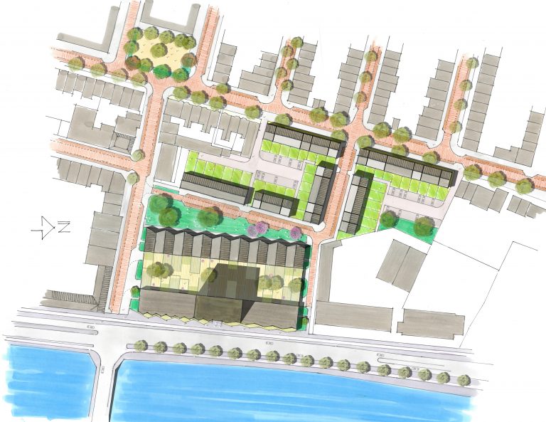 Het is een gedurfde toevoeging aan de stad: een woontoren met een mix van onderin sociale huurwoningen en bovenin koopwoningen aan rivier het Spaarne. Omringd door grondgebonden woningen in de koopsector die zich enerzijds richten tot het Spaarne of anderzijds op het groene middengebied. AM ontwikkelt het Schoterkwartier in deze bijzondere programmatische mix en geeft daarmee veder vorm aan de ‘Inclusieve Stad’.