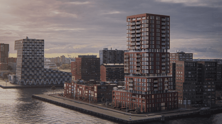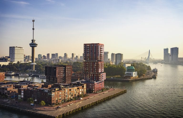 Stoer is STACK zeker. Het circa 70 meter hoge sculpturale woongebouw opgebouwd uit meerdere blokken verrijst pal aan de Maas, als onderdeel van de gebiedsontwikkeling Müllerpier. Riverside living ten top dus. Voor de ontwikkeling zijn AM en collega-ontwikkelaar Blauwhoed gezamenlijk verantwoordelijk binnen de CV Müllerpier.