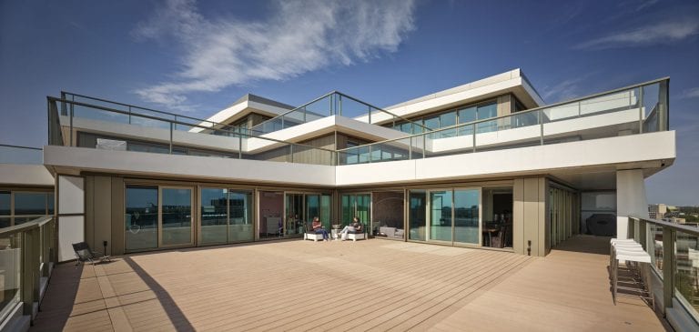 Het is een wel heel bijzondere manier van ‘optoppen’: bovenop een parkeergarage een luxe appartementencomplex met 45 woningen en 50 parkeerplaatsen realiseren. UpMountain oogt, mede door de royale buitenruimtes en de getrapte opbouw, als een heus bergdorp. En dat middenin het stadshart van Amstelveen. Een knap staaltje bouwkunst.