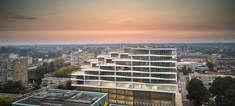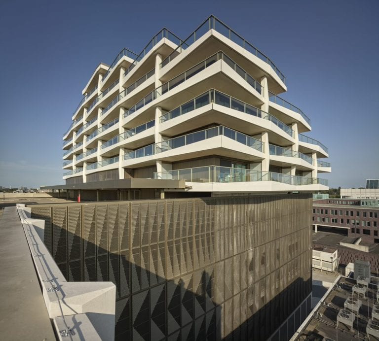 Het is een wel heel bijzondere manier van ‘optoppen’: bovenop een parkeergarage een luxe appartementencomplex met 45 woningen en 50 parkeerplaatsen realiseren. UpMountain oogt, mede door de royale buitenruimtes en de getrapte opbouw, als een heus bergdorp. En dat middenin het stadshart van Amstelveen. Een knap staaltje bouwkunst.