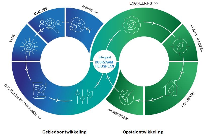 De afgelopen jaren hebben we gewerkt aan de eerste opschaalbare concepten. Op energiegebied hebben we ons eigen Nul op de Meter concept ontwikkeld die nu in projecten over heel Nederland wordt gerealiseerd. Circulair ontwikkelen hebben we vertaald in circulair prestatiemodel voor circulaire architecten- en bouwselecties. In samenwerking met de Provincie Zuid-Holland hebben we een klimaatchecklist ontwikkeld voor klimaat adaptieve en biodiverse gebiedsontwikkeling. Met onze Mobiliteitsaanpak bieden hebben we een werkwijze om het autobezit- en gebruik terug te dringen door het inpassen van deelmobiliteit.